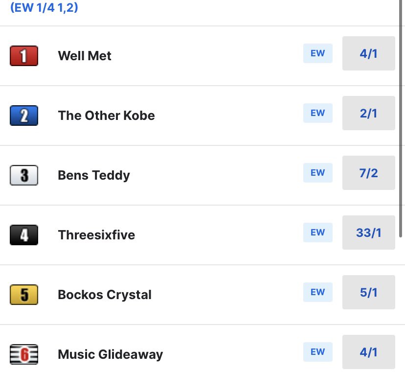 - (1) Well Met– 4 lengths
