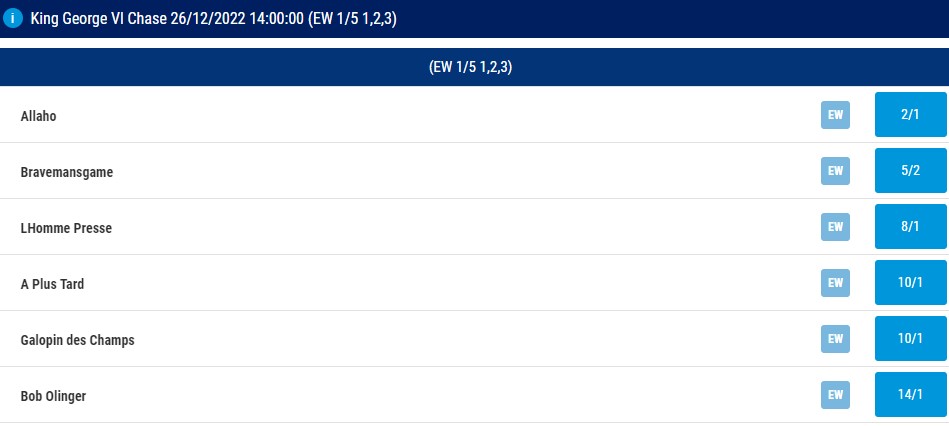 LATEST KING GEORGE VI CHASE ANTEPOST ODDS