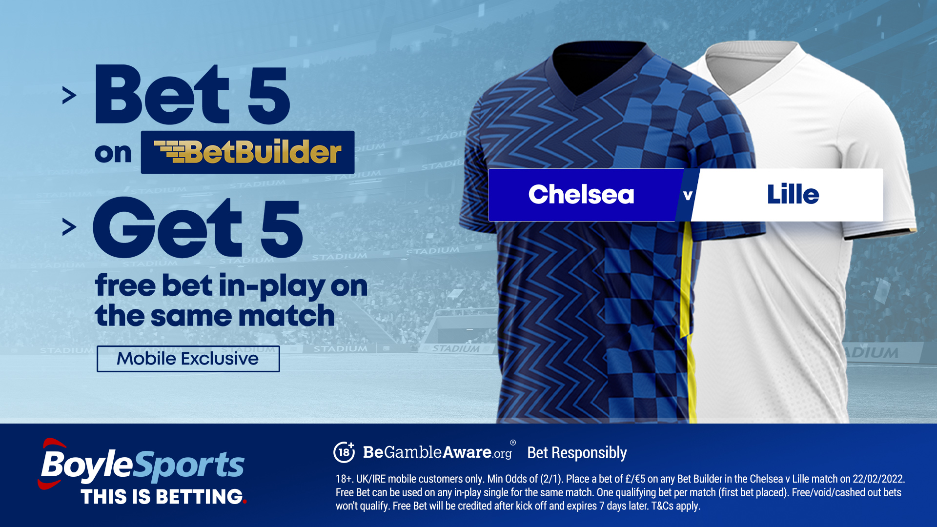 Meanwhile, BoyleSports have a special free bet offer on Chelsea vs Lille, where mobile customers can get a £/€5 In-Play bet on the match when they place a £/€5 BetBuilder before kick-off at Stamford Bridge.
