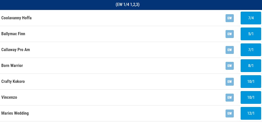 Heat three winner Maries Wedding has plummeted into 12/1 from 33/1, while Callaway Pro Am is now third favourite at 7/1 from 10/1 after his unblemished record in this year’s derby continued in the closing quarter-final heat.