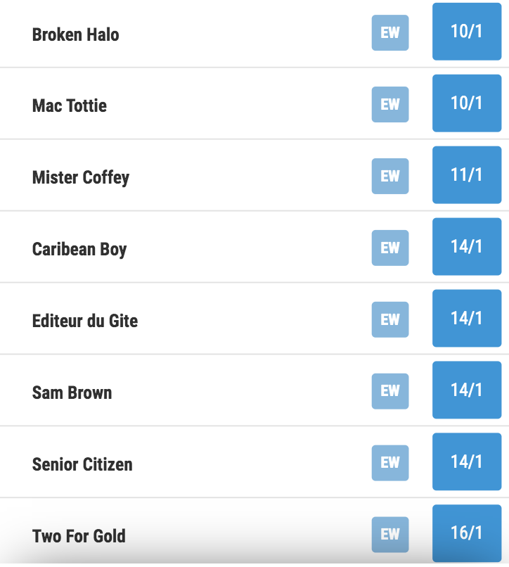 The Willie Mullins-trained Recite A Prayer and Gordon Elliott’s Battleoverdoyen feature amongst four Irish-trained entries and are 16/1 and 25/1 respectively to deliver a first Irish victory in the race.