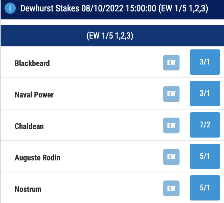Blackbeard has since been backed into 3/1 joint favourite from 7/1 in the betting for the Dewhurst back at Newmarket next month, while his 2000 Guineas chances next year were also revised into 9/1 from 16/1 by BoyleSports after the win.