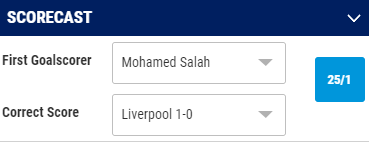 A Scorecast is a type of football bet that requires the bettor to select a goal scorer and the exact score of a match.