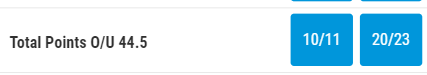 As a bettor you can bet on whether you think there will be more than 44.5 points in the game, or less than 44.5 points scored.