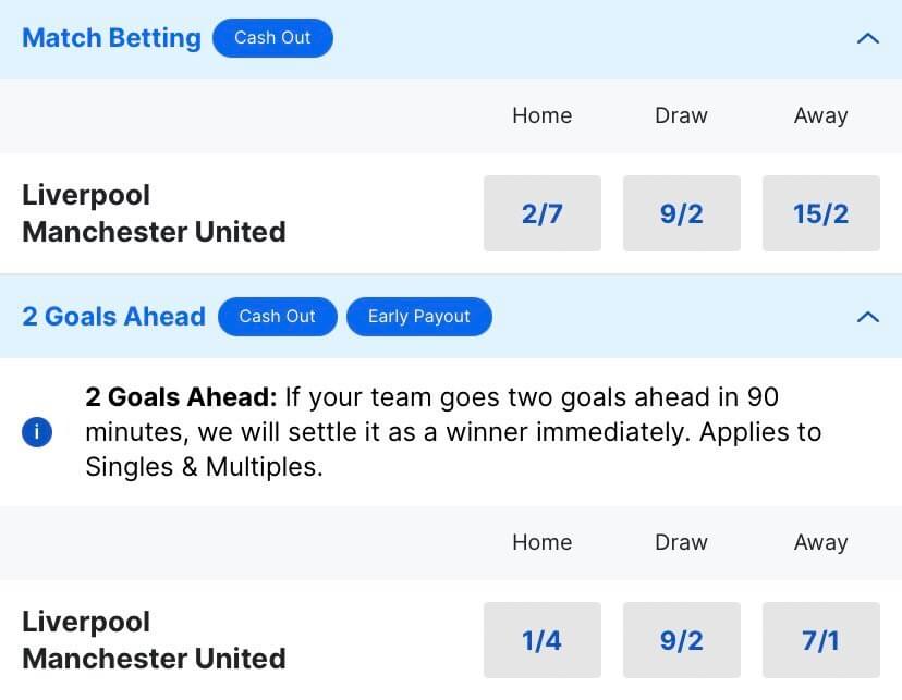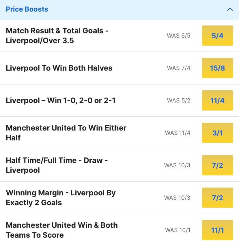| Liverpool v Man United Betting Odds – Premier League | ||
