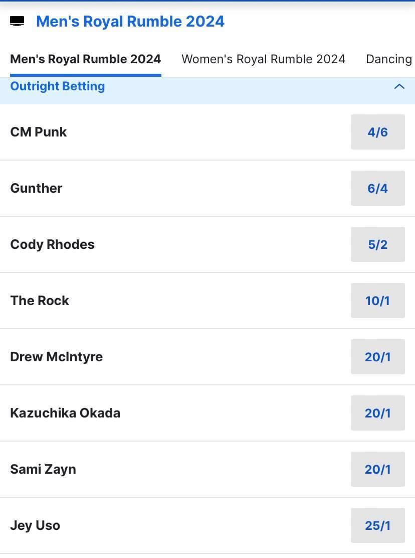 | Men’s Royal Rumble Odds 2024 | ||