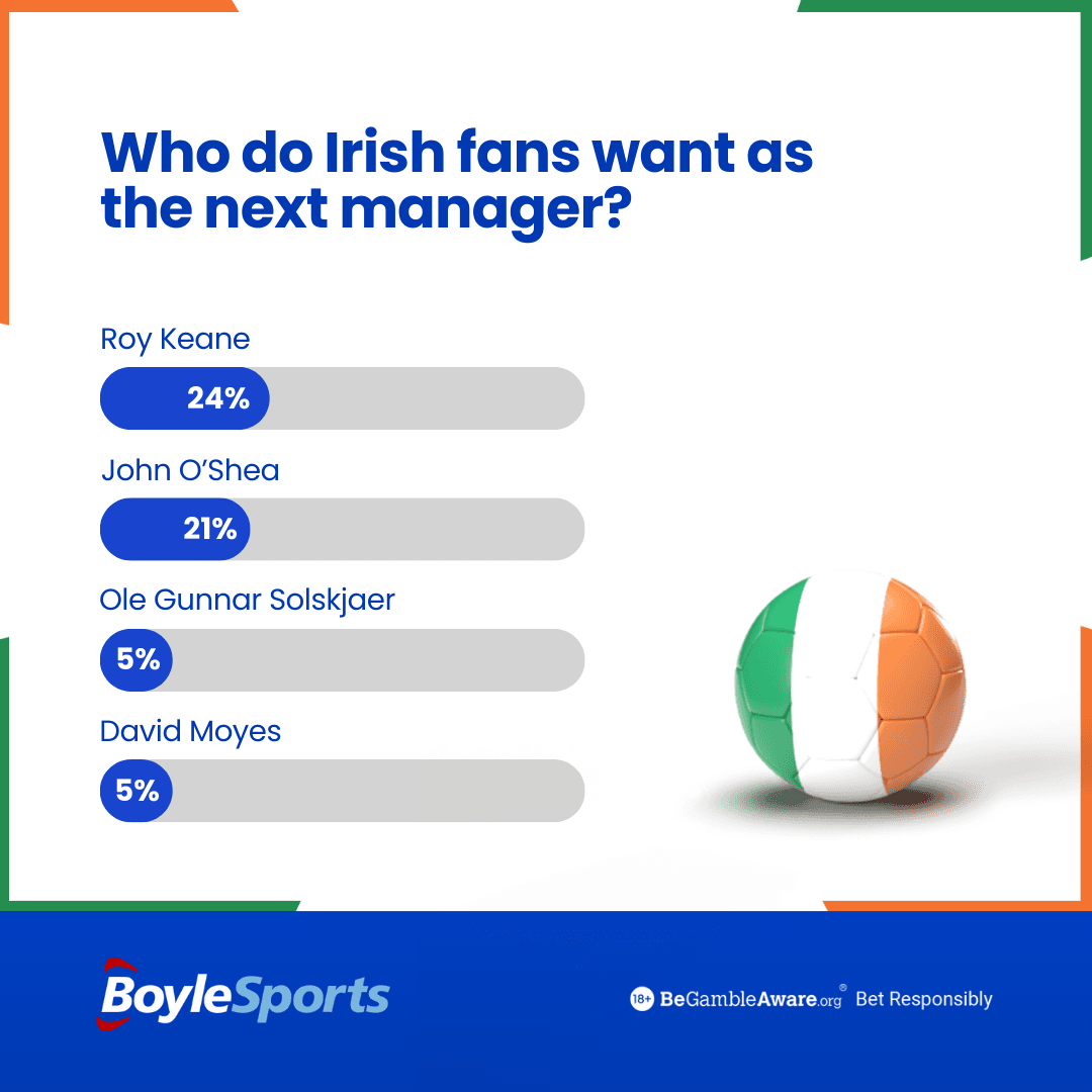 A poll of 1,000 Irish football fans found 24 per cent wanted the former Manchester United midfielder to lead the Irish qualification bid for the World Cup in 2026, although interim boss John O’Shea was a popular second choice, close behind on 21 per cent.