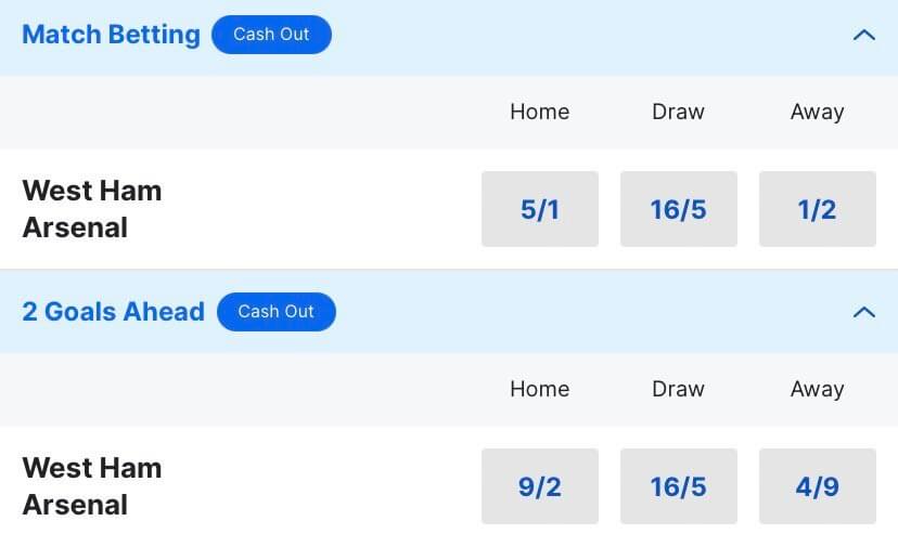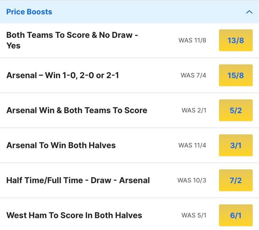 | West Ham v Arsenal Betting Odds - Premier League | ||